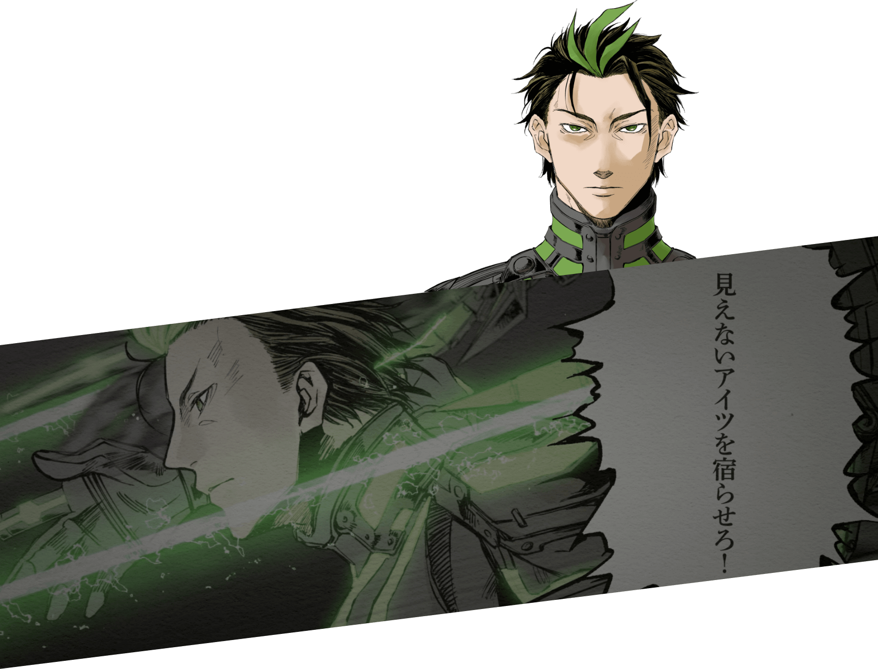 日本生まれ。身長178cm 、体重72kg。 黒髪に混じる3束の緑髪、切長の目に緑色の瞳をもち、細身かつ筋肉質な容姿。 超がつくほどの真面目で冷静沈着な性格。