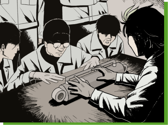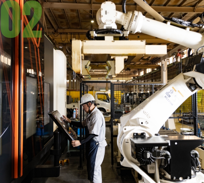 テクノロジーテクノロジーは正確ですが、自ら成長することはありません。しかしその成長への向上心とものづくりのプライドを持っているのが、三村鉄工です。もっと効率的に、もっと高品質な製品をつくるために。三村鉄工のテクノロジーは人と共に成長します。