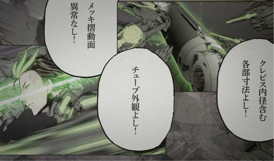 普段は腕に格納されているスケールや、溶接棒、多機能ロボットアームが一挙に展開される。