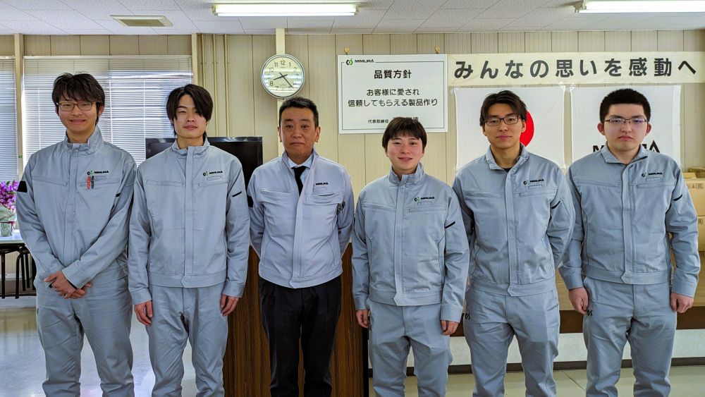 左から、乾鉄火くん・笠井直斗くん・(番外:当社社長いさお君)・村上琉晟くん・近藤巧実くん・濵田航平くん