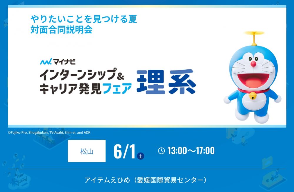 6月1日(土)マイナビ 理系学生のためのインターンシップ&キャリア発見フェア 松山会場に出展いたします!