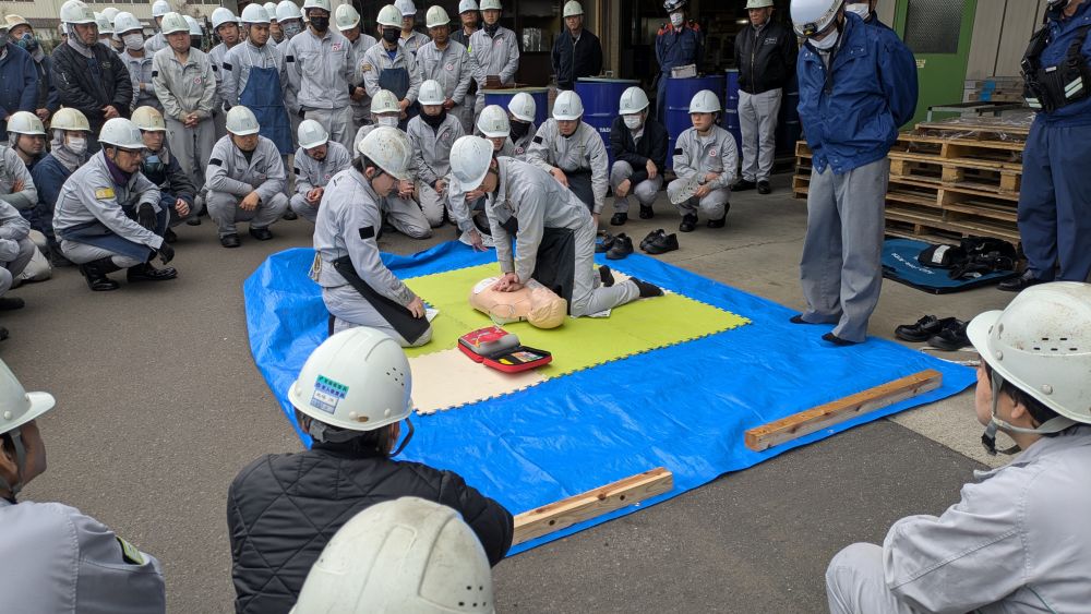 AEDの使用方法や消火栓での散水技術など、普段はなかなか触れる機会が少ないですが、いざという時に備えて、当社の社員は万全の準備を整えています。私たちは、社員一人ひとりが自信を持って対応できる企業を目指しています。
