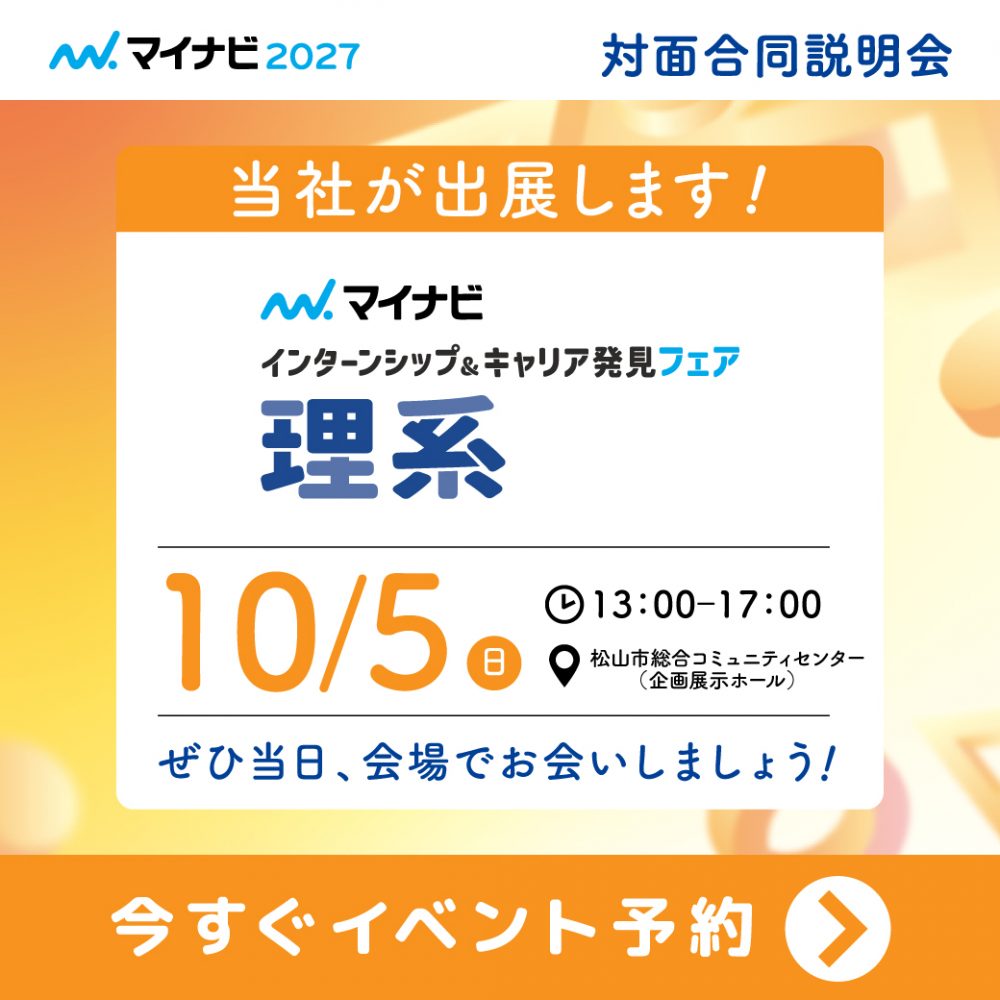 10月5日 マイナビインターンシップ&キャリア発見フェア【理系】 松山会場に出展いたします!