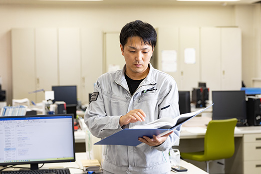 口だけでなく行動で示す渡田課長は理想の上司です。自分にも後輩ができたので、先輩から教わるばかりではなく指導法についても学んでいる最中です。就職を考える皆さんには「自分の目で見て感じること」を大切にしてほしいと思っています。会社見学でもインターシップでも、自分で行動することを大事にしてください。
